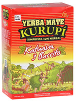 Kurupí Katuava & Burrito is een unieke yerba mate-blend uit Paraguay die traditionele kracht combineert met subtiele kruidige tonen. Deze speciale mix wordt verrijkt met katuava, een kruid dat in Zuid-Amerika bekendstaat om zijn stimulerende en vitaliserende eigenschappen, en burrito, een aromatisch blad met een frisse, muntachtige smaak.