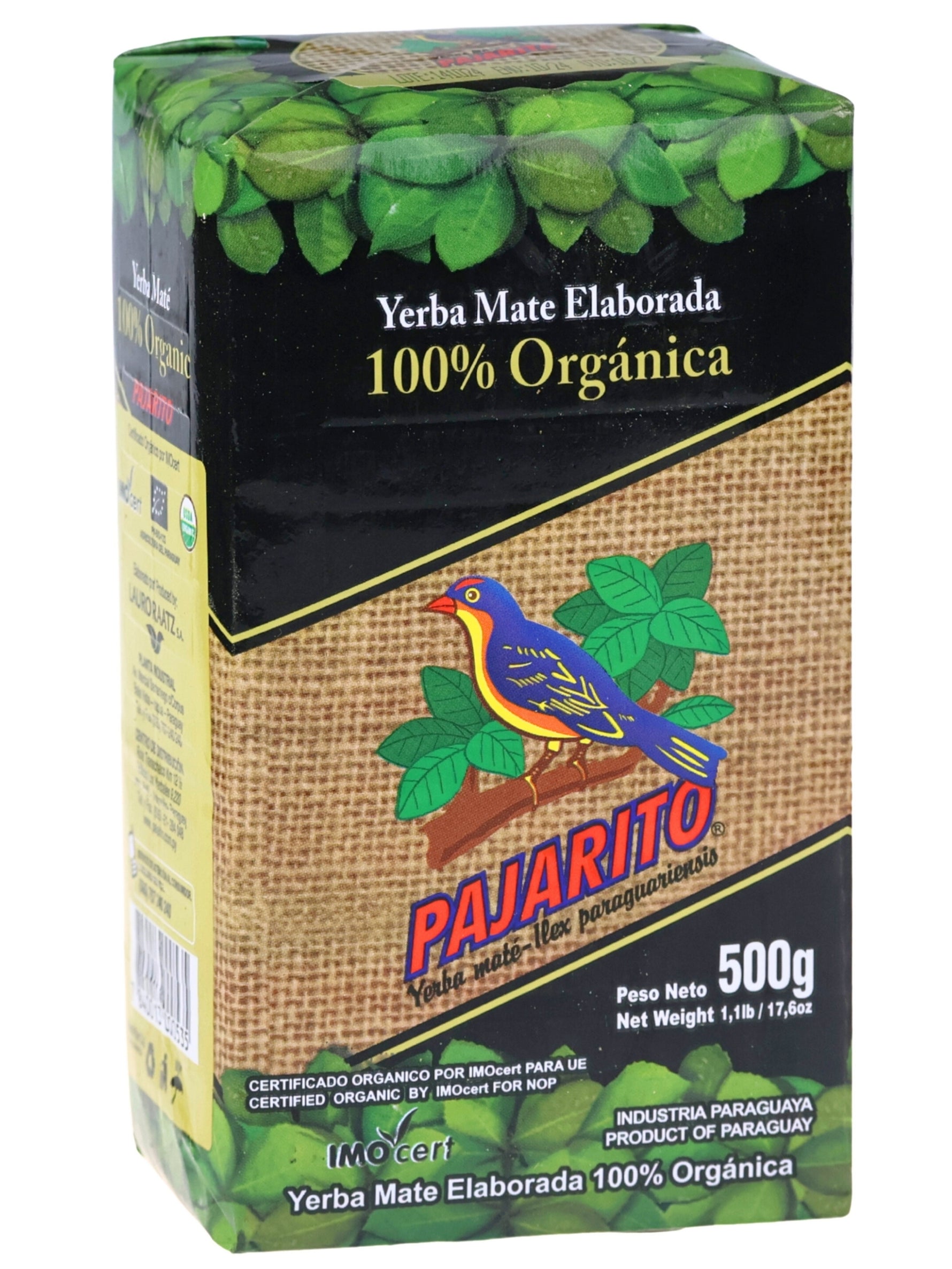 Pajarito Organica is, zoals de naam al doet vermoeden, een 100% biologische, duurzaam en ecologisch geproduceerde yerba. Het groeit onder streng toezicht met veel aandacht voor de impact van het proces op het milieu en wordt vervolgens in de loop van twee jaar verzameld, biologisch verwerkt en op natuurlijke wijze gedroogd. Dit resulteert in een fijnere snede en een lager steelgehalte, waardoor de smaak van deze yerba sterk en uitgesproken maar toch delicaat is.