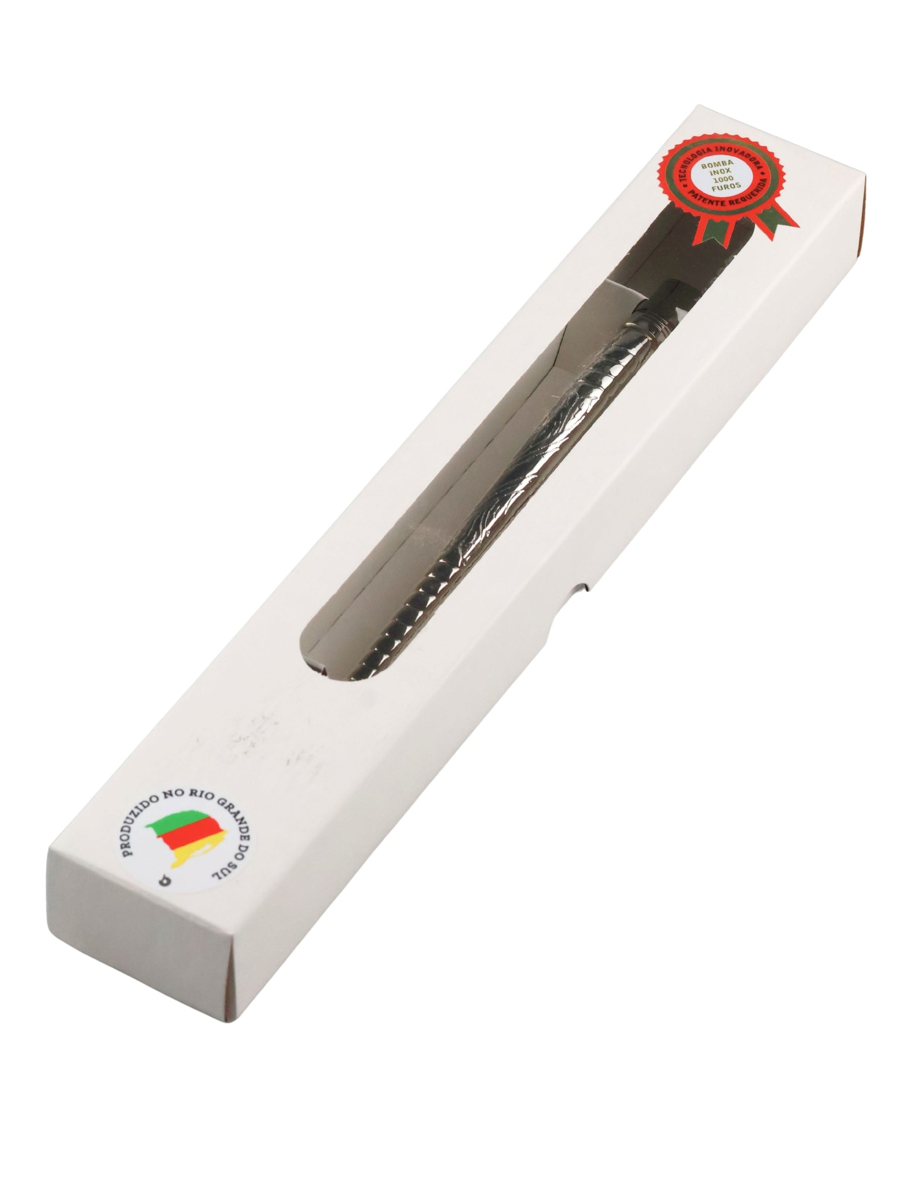 Deze bombilla is speciaal ontworpen voor chimarrão en andere zeer fijna Mate. Het breed, rond "1000 furos" filter, voorzien van honderden piepkleine gaatjes die zelfs de kleinste maté-deeltjes tegenhouden - ideaal voor poederachtige yerba's.
