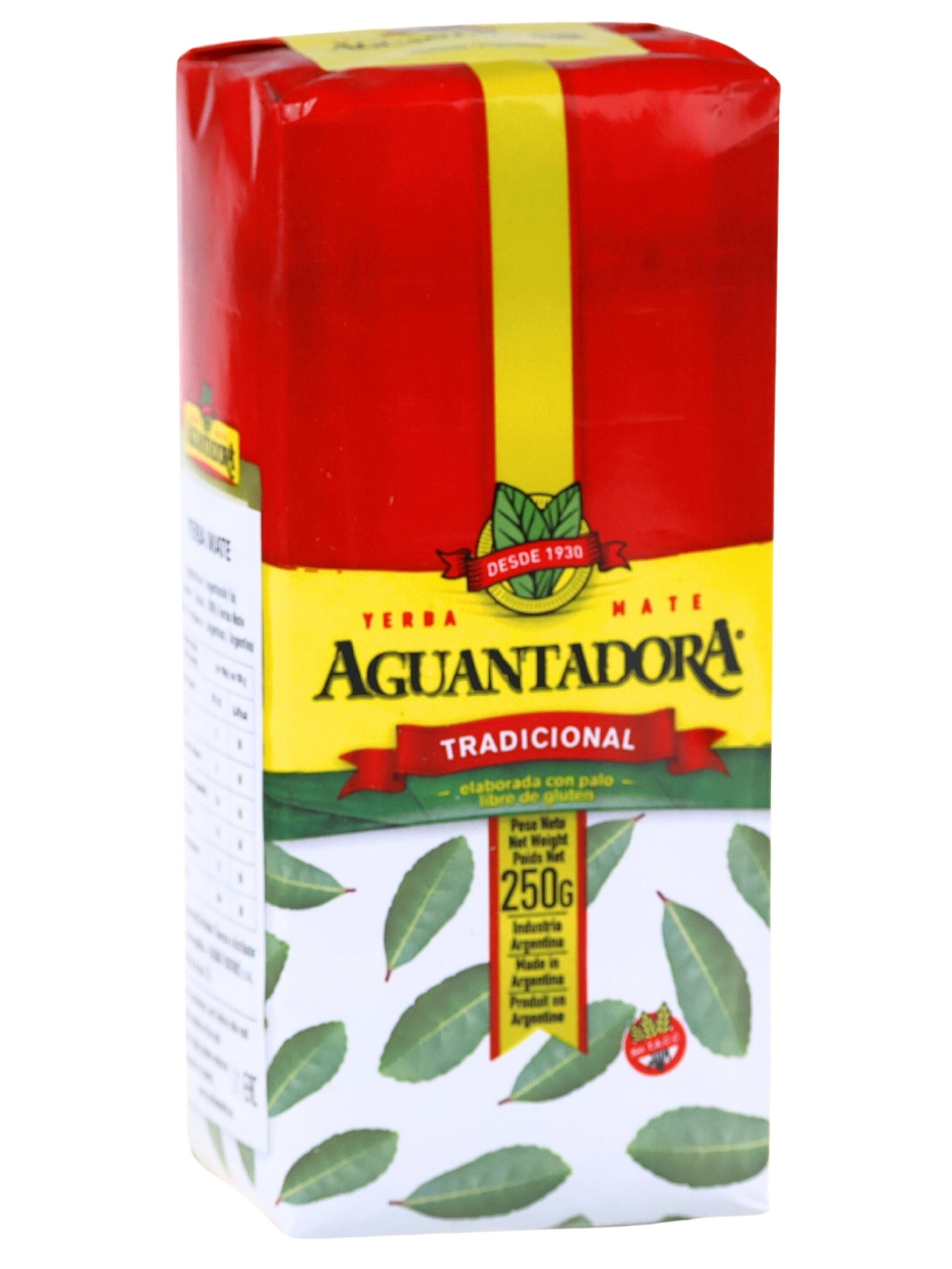 Yerba Mate Aguantadora Tradicional comes from cooperative Monte Carlo (since 1930). Smoke-dried (sin humo) and aged up to 18 months: typical Argentine flavor, full-bodied and with mild, muted bitterness. Awarded best-tasting yerba mate at Caminos y Sabores 2016 (Buenos Aires).